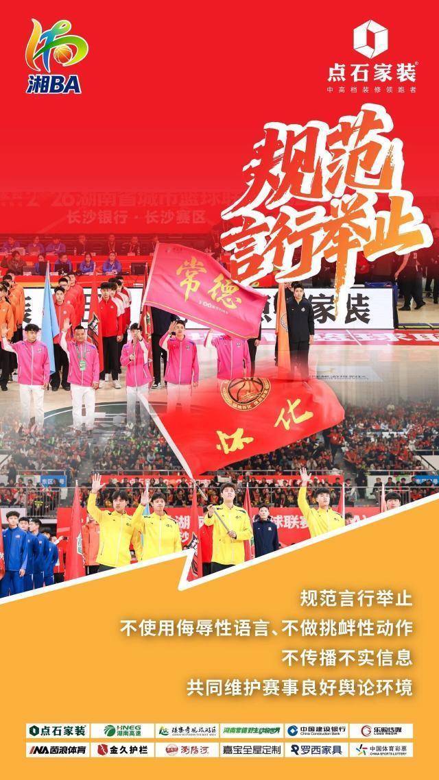体坛周报全媒体发布 4月3日晚,点石家装2026湘BA第二轮战火重燃。为督察纯正热血、文静有序的赛场氛围,湘BA文静不雅赛倡议系列海报郑重发布,诚邀整体球迷共同践行。